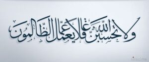 The Omniscient – العليم karizmo@gmail.com | July 7, 2024 | هل من مدكر | No Comments Spread the words of love { وَلَا تَحۡسَبَنَّ ٱللَّهَ غَـٰفِلًا عَمَّا یَعۡمَلُ ٱلظَّـٰلِمُونَۚ … } [إِبۡرَاهِيمَ:٤٢]«And never think that Allah is unaware of what the wrongdoers do. …» (Ibrahim:42) #قران_كريم #خط_عربي Tags:خط_عربي, قران_كريم Related Posts The believers – المؤمنون No Comments | Apr 27, 2023 حديث اليوم رقم (3299): هل تعرف من هو ذاك الذي لا تُنْقِذُه أَعْمَالُهُ؟ No Comments | Jan 14, 2026 Supplication – دعاء No Comments | Jul 2, 2023 The patience – الصبر No Comments | Aug 10, 2022 About The Author karizmo@gmail.com Add a Comment Cancel replyYou must be logged in to post a comment.