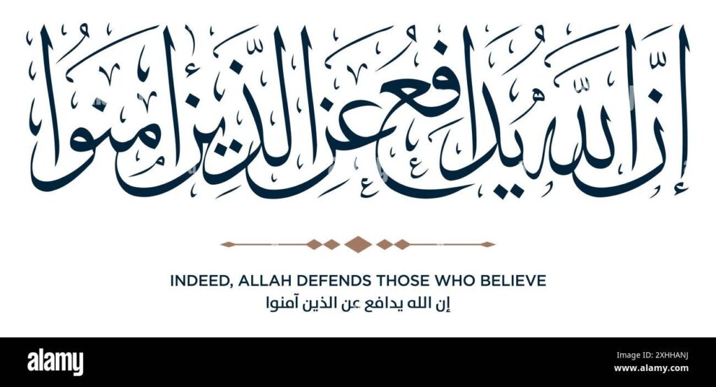 The defense – الدفاع karizmo@gmail.com | September 24, 2024 | هل من مدكر | No Comments Spread the words of love { ۞ إِنَّ ٱللَّهَ یُدَ ٰفِعُ عَنِ ٱلَّذِینَ ءَامَنُوۤا۟ۗ … } [الحَجِّ:٣٨]«Indeed, Allah defends those who have believed. …» (The pilgrimage:38)#قران_كريم #خط_عربي Tags:خط_عربي, قران_كريم Related Posts حديث اليوم رقم (2950) هل تعرف فضل الله العظيم فيما نؤجر على فعله من الخير؟ No Comments | Jan 16, 2025 Allah – الله No Comments | Aug 11, 2021 حديث اليوم رقم (3155) هل تعرف هذا التنبيه الخطير بعدم الرياء وطلب حسن الخاتمة؟ No Comments | Aug 14, 2025 حديث اليوم رقم (2544) هل تعرف هذا الدعاء المأثور عند الكرب؟ No Comments | Nov 20, 2023 About The Author karizmo@gmail.com Add a Comment Cancel replyYou must be logged in to post a comment.