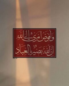 The All-Seeing – البصير karizmo@gmail.com | December 25, 2025 | هل من مدكر | No Comments Spread the words of love { … وَأُفَوِّضُ أَمۡرِیۤ إِلَى ٱللَّهِۚ إِنَّ ٱللَّهَ بَصِیرُۢ بِٱلۡعِبَادِ } [غَافِرٍ:٤٤]«… and I entrust my affair to Allāh. Indeed, Allāh is Seeing of [His] servants.”». [Forgiver:44]#قران_كريم #خط_عربي Tags:خط_عربي, قران_كريم Related Posts Allah – الله No Comments | Aug 11, 2021 حديث اليوم رقم (2981) هل تعرف كيف تُمحى الذنوب والسيئات؟ No Comments | Feb 16, 2025 Supplication – دعاء No Comments | Jul 2, 2023 The believers – المؤمنون No Comments | Apr 27, 2023 About The Author karizmo@gmail.com Add a Comment Cancel replyYou must be logged in to post a comment.