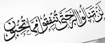 {لَن تَنَالُوا۟ ٱلۡبِرَّ حَتَّىٰ تُنفِقُوا۟ مِمَّا تُحِبُّونَۚ …} (آل عمران:92)