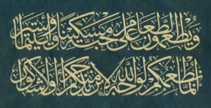 { وَیُطۡعِمُونَ ٱلطَّعَامَ عَلَىٰ حُبِّهِۦ مِسۡكِینࣰا وَیَتِیمࣰا وَأَسِیرًا (*) إِنَّمَا نُطۡعِمُكُمۡ لِوَجۡهِ ٱللَّهِ لَا نُرِیدُ مِنكُمۡ جَزَاۤءࣰ وَلَا شُكُورًا }.[الإِنسَانِ:٨-٩] «And they give food in spite of love for it to the needy, the orphan, and the captive, (*) [Saying], “We feed you only for the countenance of Allah . We wish not from you reward or gratitude.» (The man:8-9)